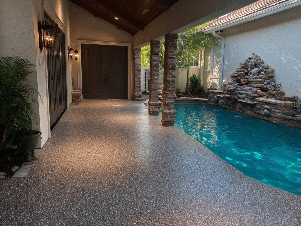 Fortress Pool Deck Concrete Coatings transform slippery, sun-baked decks into cool, safe, and inviting outdoor spaces. Each system is crafted with UV-resistant, slip-resistant technology that keeps your pool area comfortable underfoot and visually striking through every season—perfect for homes, resorts, and community pools alike.